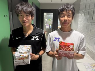 乙守選手(3)のご家族よりお菓子の差し入れをいただきました。 -