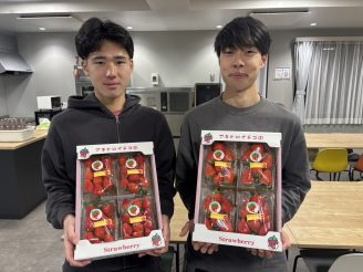 蓮沼合宿にて、千葉県東部地区父母会の方々より、苺とアミノバイタルの差し入れをいただきました。