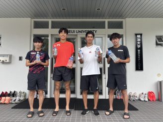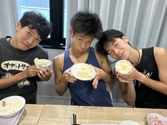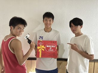 本学競走部OBの角出様と佐々木様よりアミノバイタル、ポカリスエットの差し入れをいただきました。