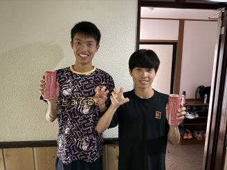 本学競走部OB児玉様と前田様よりいろはすの差し入れをいただきました。